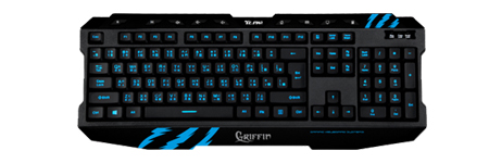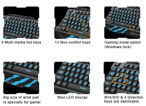 Blue LED laser engraved keycap, membrane silent keys with optimized tactile feel.